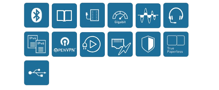 In addition, the phone has an integrated Gigabit Ethernet switch with "Power over Ethernet" (PoE) functionality*, integrated Bluetooth (except for the D385N model) and a USB port for easy pairing of accessories such as the Snom D3 or USB headsets. With the Snom A230 DECT dongle and the Snom C52-SP the Snom D385 can easily be extended to a flexible conference solution.