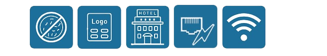 The Snom HD350W stands out due to its particularly clear design. Important function keys such as mute, hands-free and hold are located on the control panel. The antibacterial housing to protect against germs is a real plus in everyday life. A large visual display alerts the guest to calls or waiting messages. Individualised inscriptions are made as inserts on the control panel.